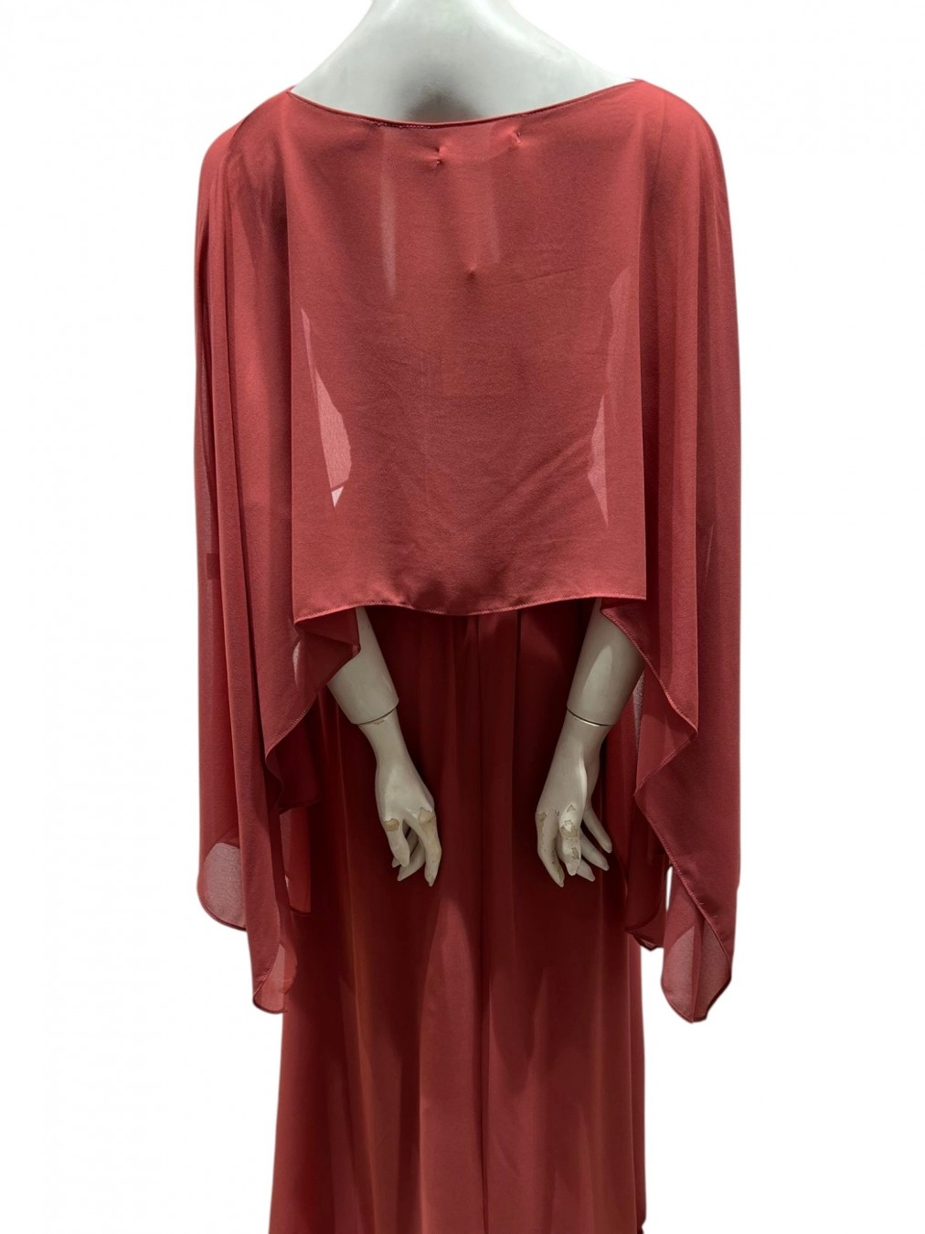 Fluid slip-on shawl, crafted from lightweight and sheer fabric, featuring a 30 cm central opening to pass over the head. Its asymmetrical cut creates long sleeves and an elegant drape over the shoulders and back. Measuring 165 cm in length and 80 cm in width, it is ideal for complementing your formal outfit with lightness and sophistication